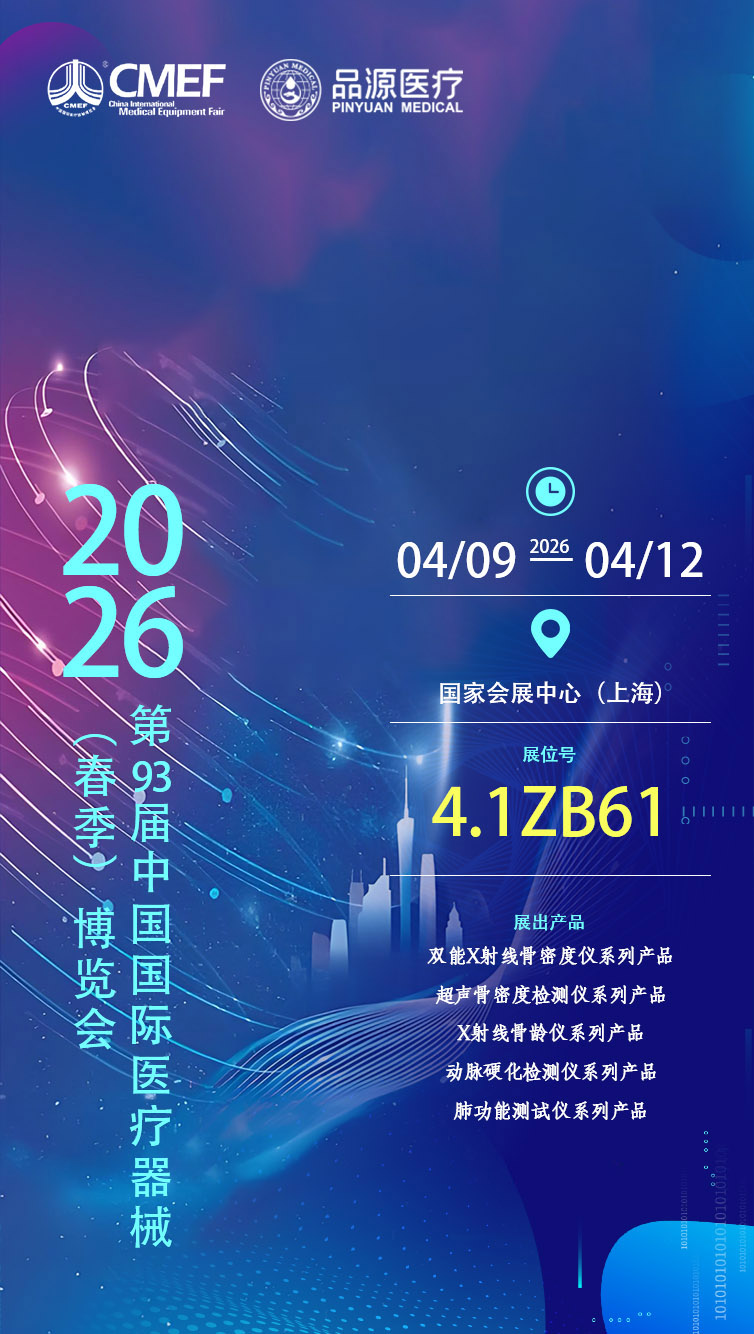 時隔一年,品源醫(yī)療再度赴約這場醫(yī)械行業(yè)盛會,屆時將攜雙能X射線骨密度儀、超聲骨密度檢測儀、X射線骨齡儀、動脈硬化檢測儀、肺功能測試儀五大核心系列產(chǎn)品參展,全方位展示品牌在健康檢測、慢病篩查、生長發(fā)育評估等領域的技術積淀與產(chǎn)品實力,與行業(yè)同仁共話醫(yī)療發(fā)展新機遇。